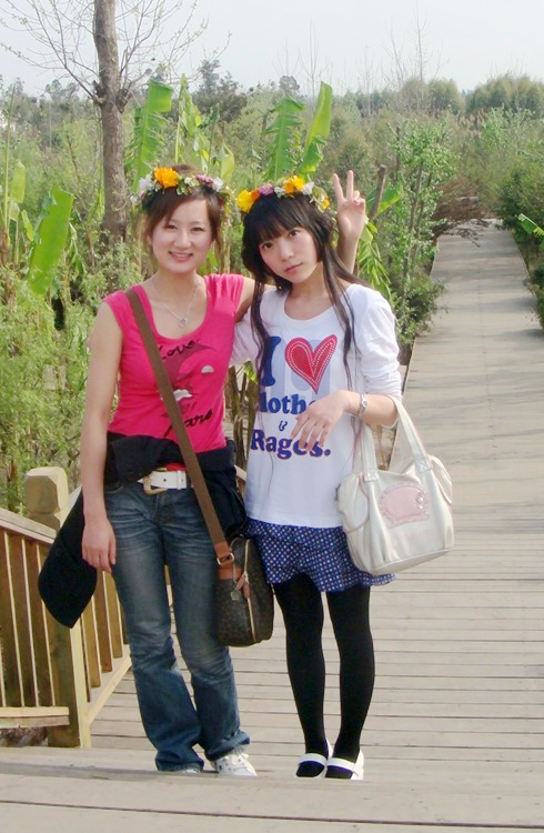 ↓ 畢業第二年的我。和好友花鄉徜徉。那時,長毛已到PP。
